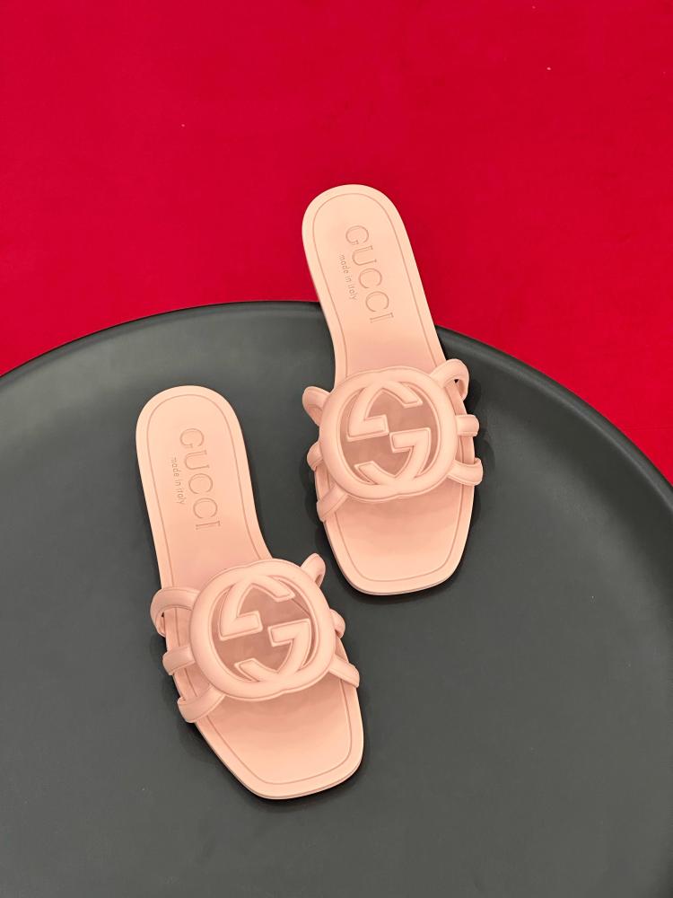 شبشب صيفي نسائي قوتشي بشعار متشابك بلون سومو