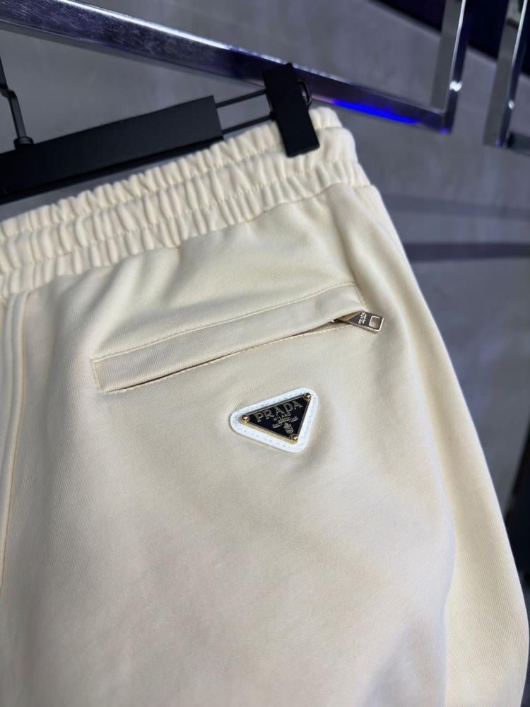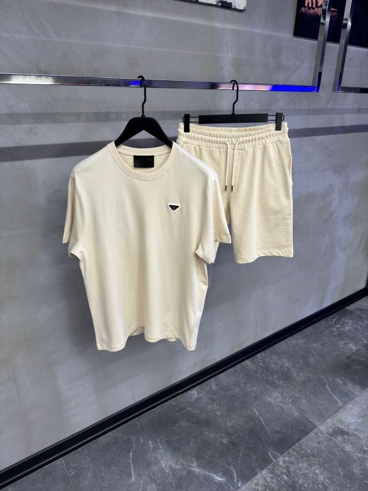 طقم بجامة يومي سبور رجالي من برادا تيشيرت وشورت بلون بيج