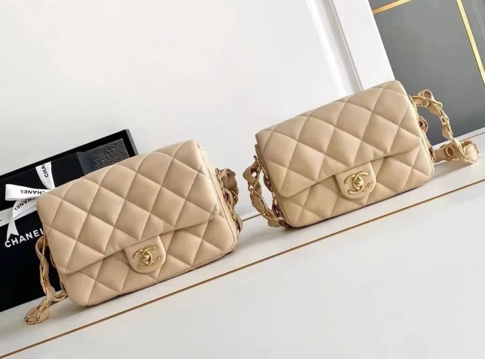 سيت شنط شانيل كلاسيكية بيج بسلسلة ذهبي