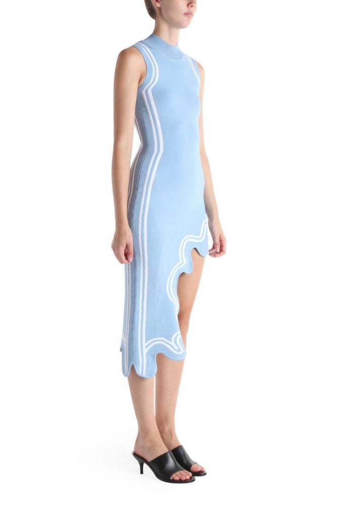 فستان مكشوف ضيق من بالمان بقصة مموجة لون سماوي