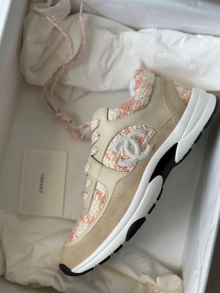 حذاء نسائي يومي شانيل شوز لون بيج كارو اورنج