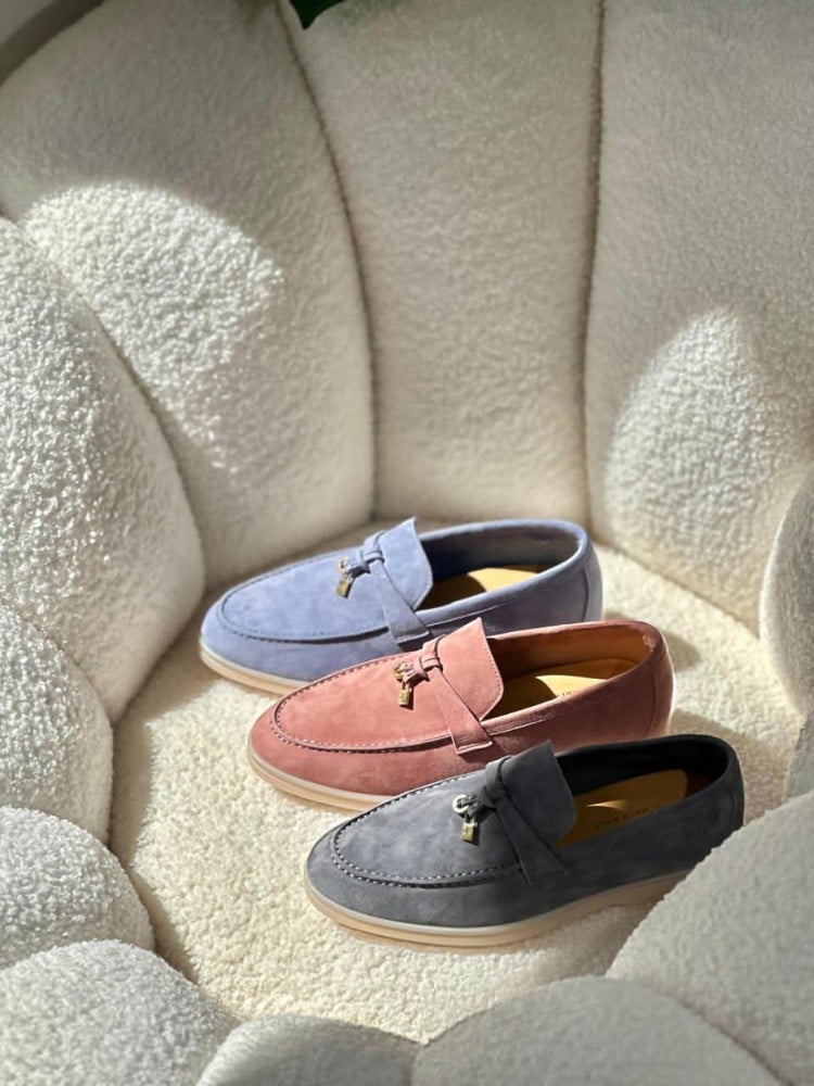 تتميز لورو بيانا بجودة الجلد المخملي الفاخرة التي توفر الراحة والتنفس لقدميك طوال اليوم، مع الحفاظ على المظهر الراقي والأنيق. يأتي اللون الرمادي الفاتح بتدرجاته الناعمة والأنيقة، مما يضيف لمسة من الأناقة والتميز إلى إطلالتك.
