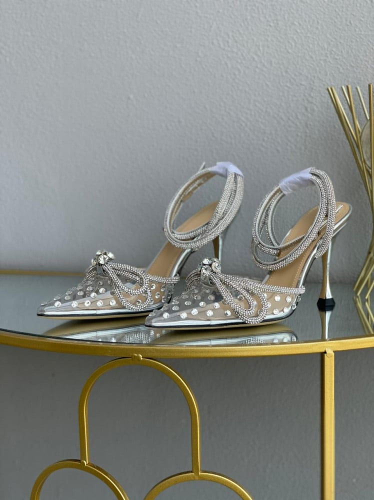 تألقي بإطلالة استثنائية مع هاي هيلز ماتش أند ماتش المصمم بلون فضي لامع ومرصع بأحجار براقة تضيف لمسة من الفخامة والرقي. يتميز بتصميم أنيق مع حزام رباط حول الكاحل يعزز جاذبيتك ويوفر ثباتًا مثاليًا للقدم.