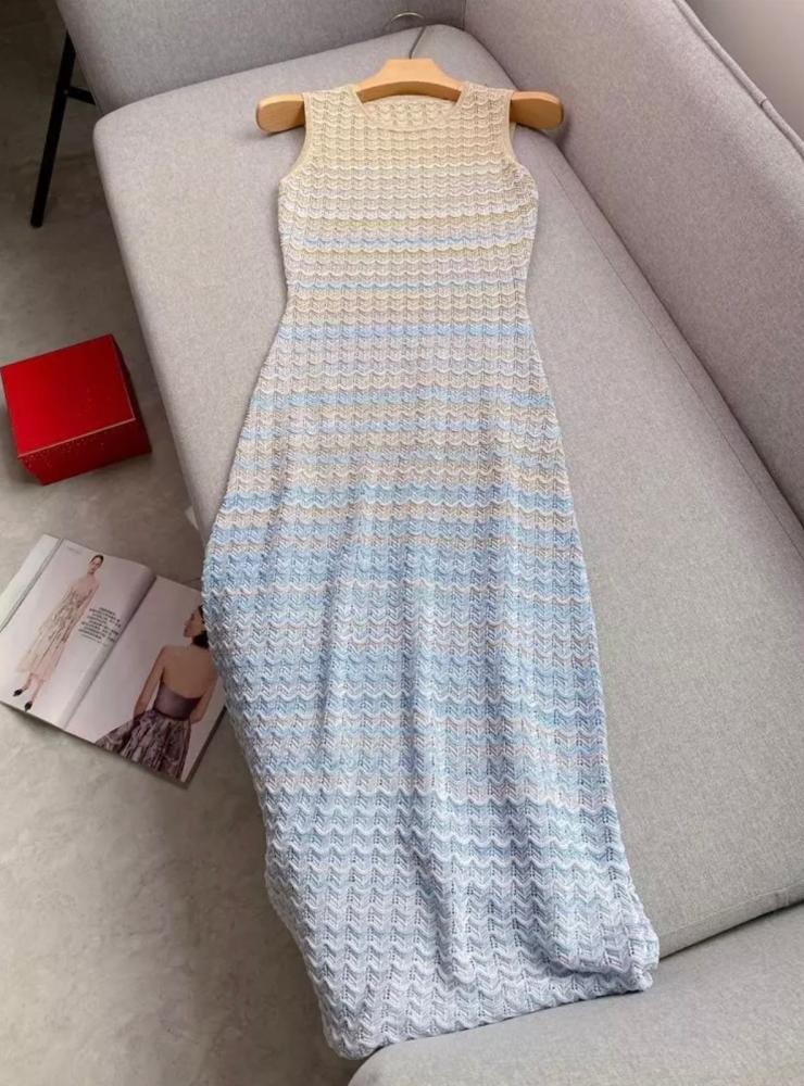 تألقي بإطلالة أنيقة وعصرية مع فستان ساندرو بلا أكمام بلون أزرق وبيج متدرج، المصمم ليمنحك لمسة من الفخامة والتميز