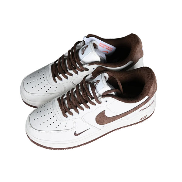 استمتع بإطلالة عصرية ورجولية مع حذاء سنيكرز نايكي اير فورس 1 للرجال باللون الأبيض مع البني. يجمع هذا الحذاء بين التصميم الكلاسيكي الشهير مع لمسة عصرية من اللون البني الجذاب.