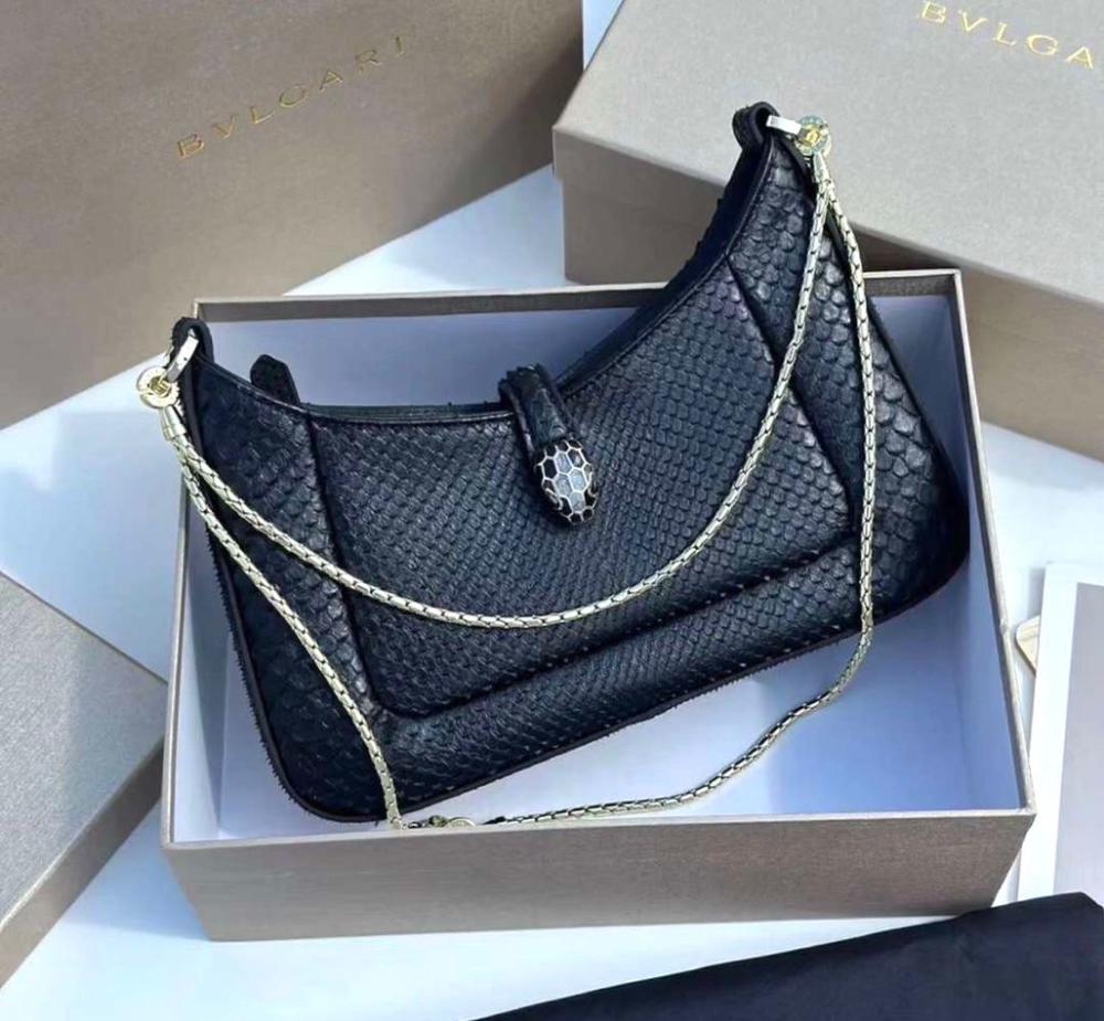 حقيبة كتف بولغاري جلد فاخر لون أسود وحامل سلسال