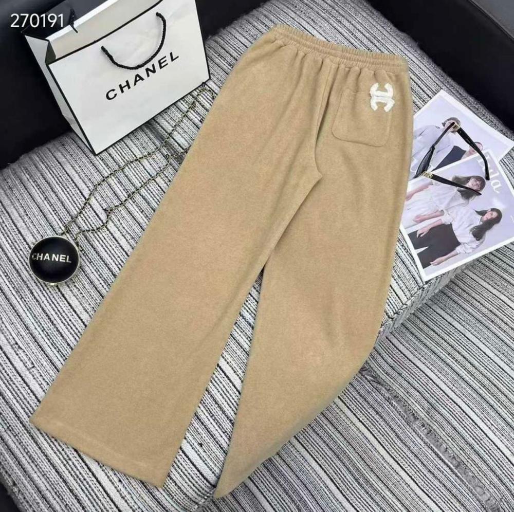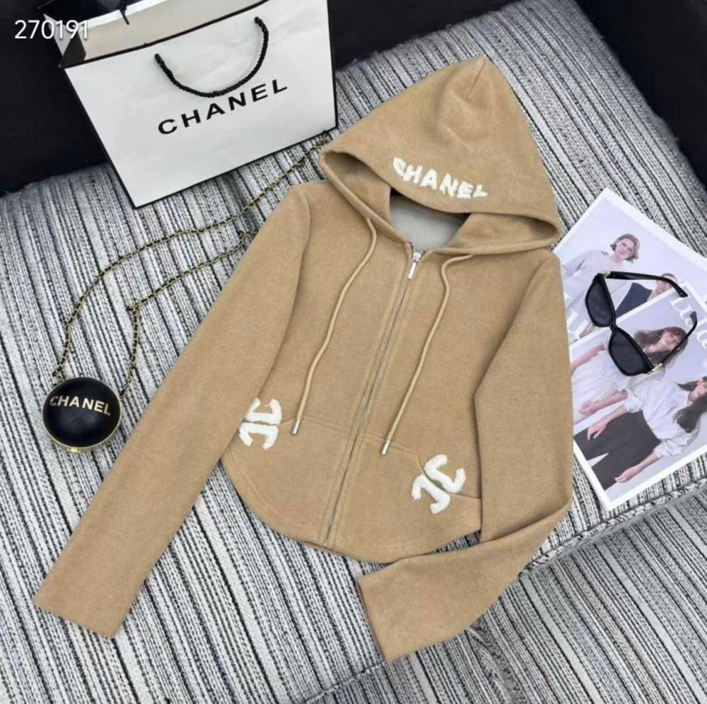 سيت شانيل بيجامة سبور نسائية لون بيج نمط سحاب