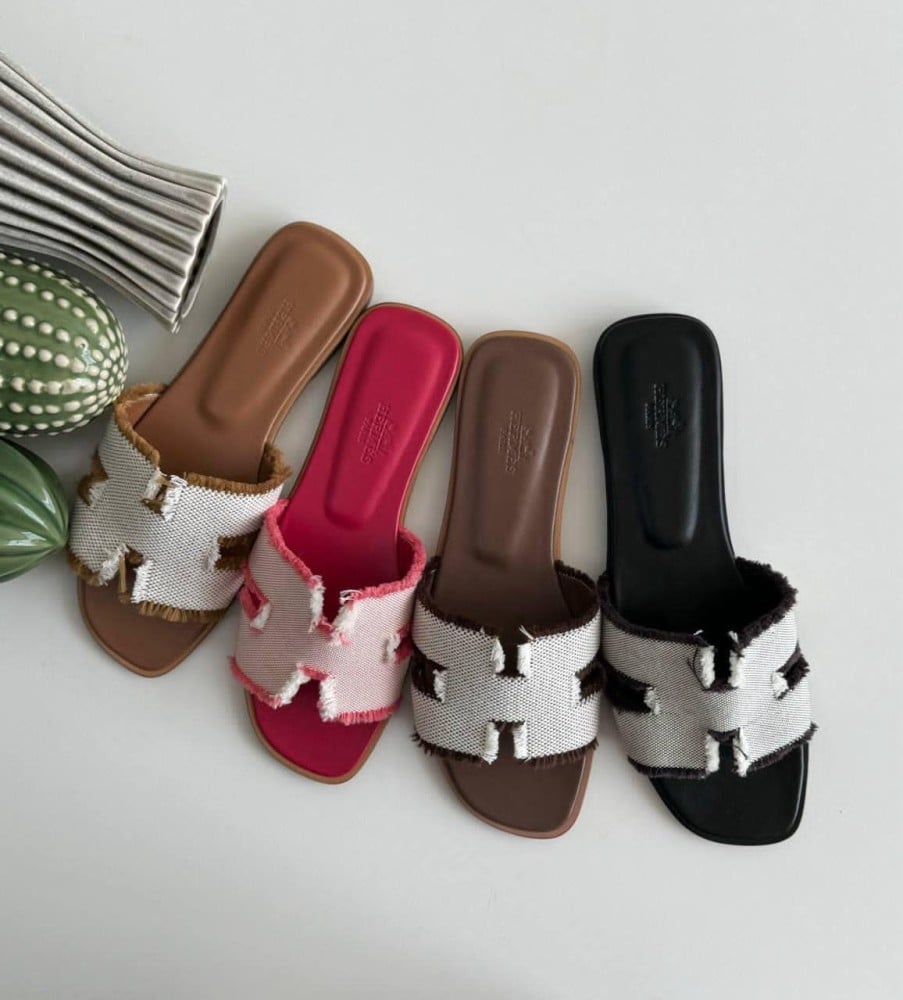 تظهر تفاصيل هيرميس الراقية، سواء كانت شعار الماركة أو التصميمات الدقيقة، لتضيف لمسة فخمة وتميزية. يمكن تنسيق هذا السليبر بسهولة مع ملابس مختلفة، مثل الفساتين الصيفية أو البناطيل القصيرة، لإطلالة متكاملة.