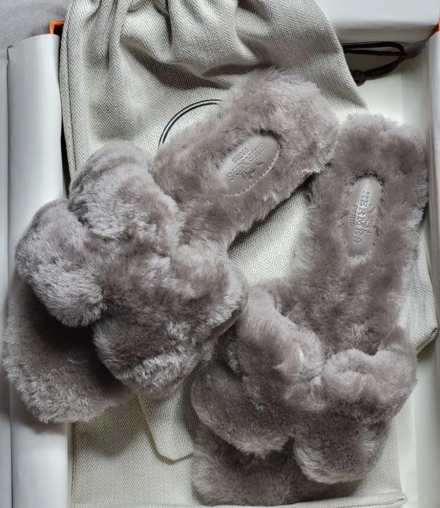 باختيارك سليبر نسائي شتوي هيرميس فرو باللون الرمادي، ستتألقين بإطلالة فاخرة ودافئة في آن واحد. إنه خيار رائع للنساء اللاتي يرغبن في الجمع بين الأناقة والراحة في حذائهن.