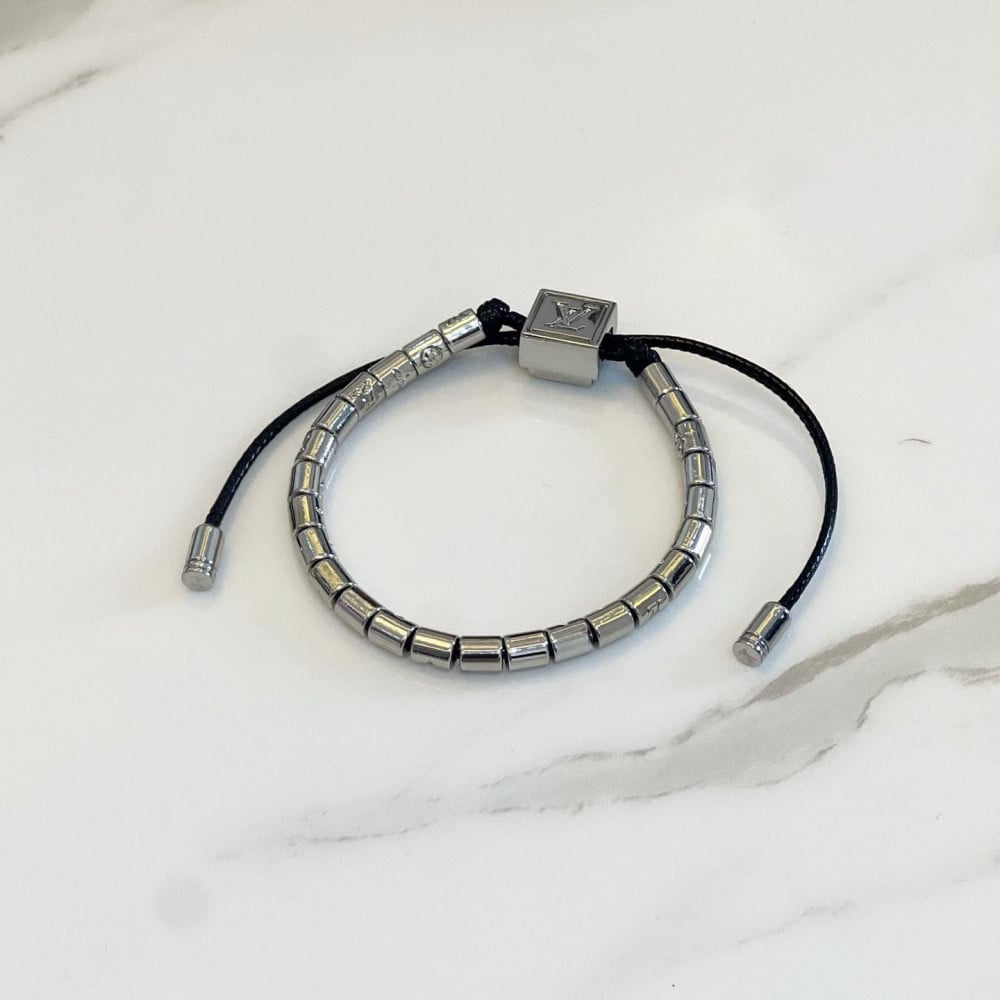 تمتاز اسوارة رجالية لويس فيتون أحجار سيلفر بخيط أسود بأناقتها وتصميمها الراقي. تتكون من خرز فضي وحبل بوليستر أسود، مع تفاصيل من التيتانيوم الأسود. إنها قطعة مثالية للرجال الذين يبحثون عن تفرد وأناقة في إكسسواراتهم.