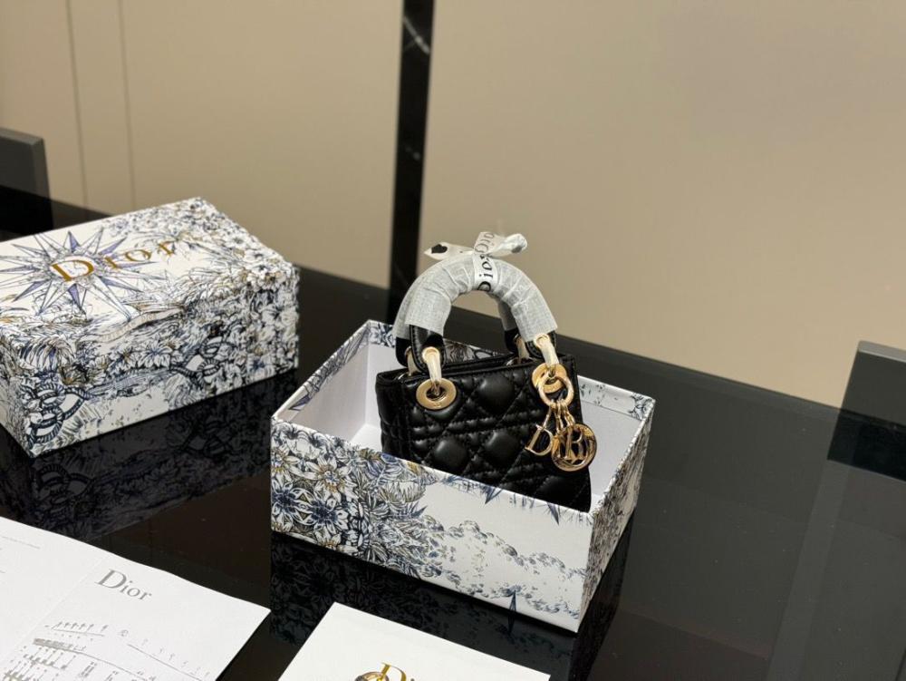 حقيبة صغيرة جدا ليدي ديور جلد مطرز لون أسود