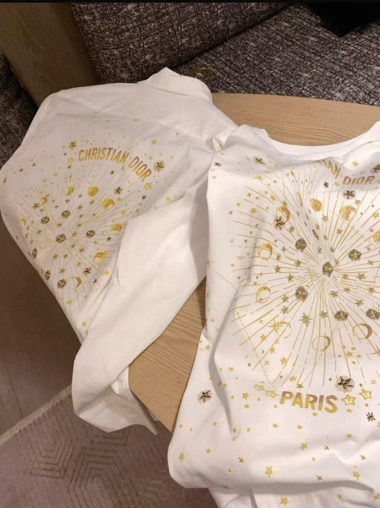 توينز قطعتين ديور تيشيرت وقميص بلون أبيض وذهبي فاخر