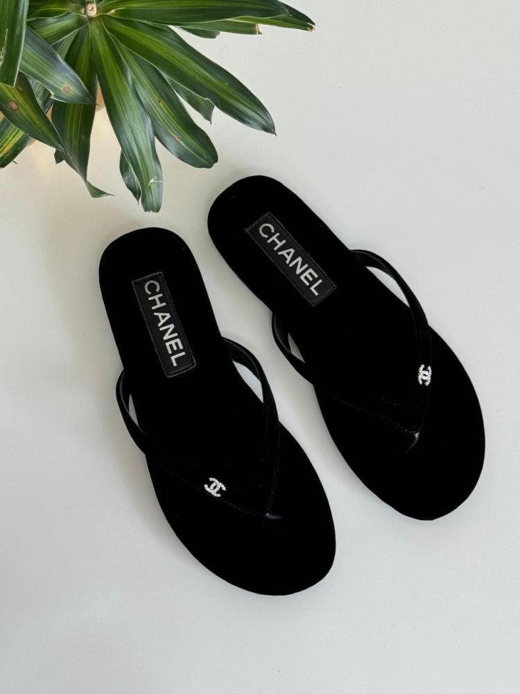 صندل نسائي فلات شانيل اوبن لون اسود فخم