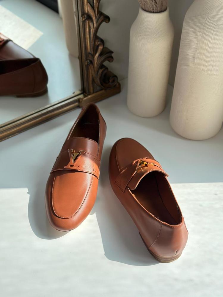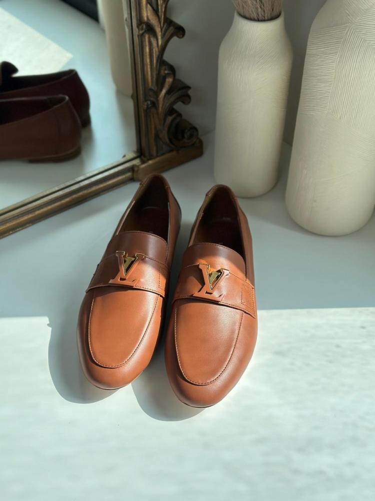 فلات شوز لويس فيتون جلد فاخر لون عسلي بشعار الماركة