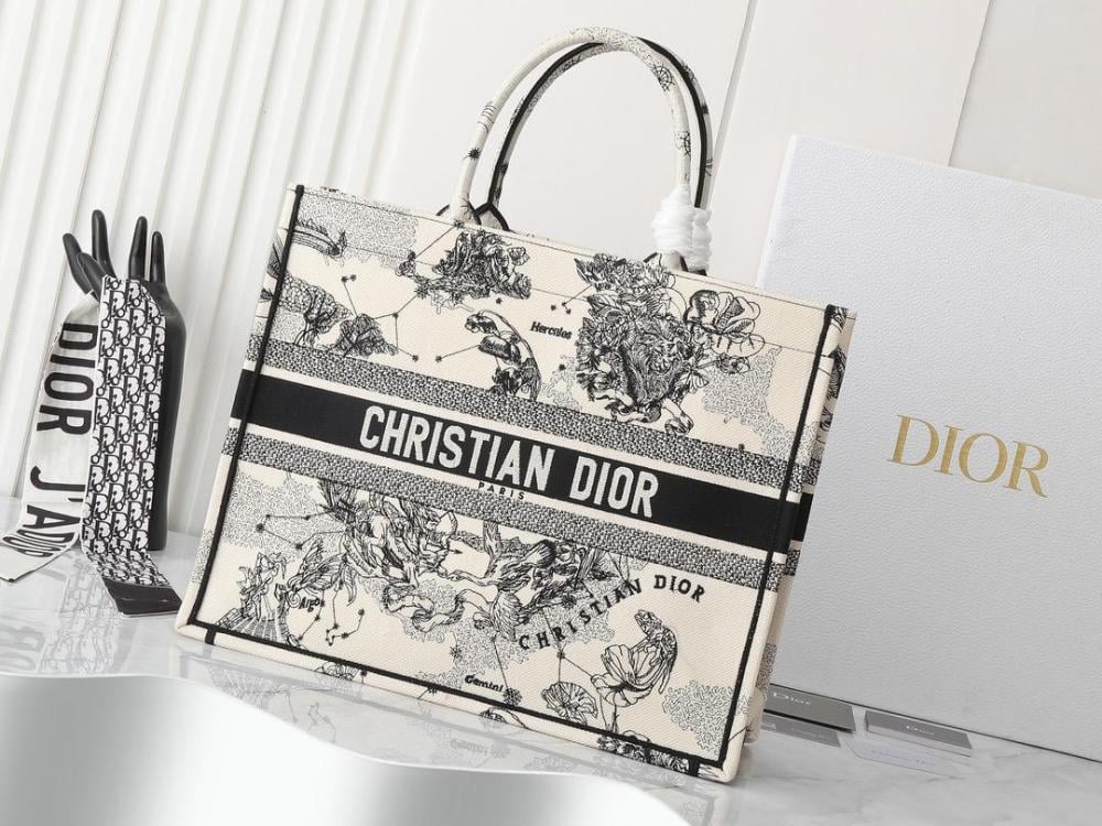 شنط ديور توت بوك ديور نقشة ورد بلون اسود وابيض