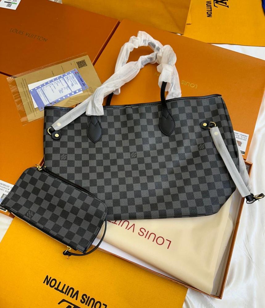 شنطه لويس فيتون نيفرفل توت باق مربعات أسود ورمادي