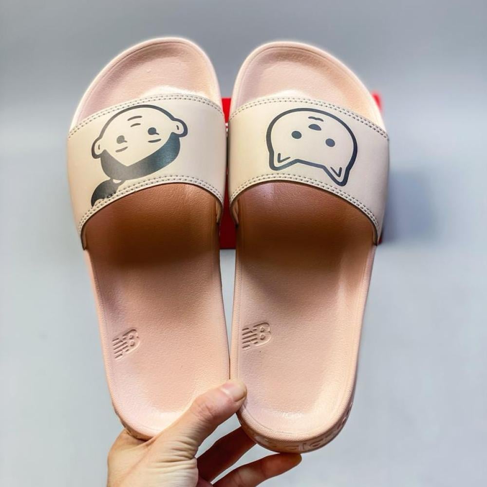 سليبر نسائي نيو بالانس بلون سومو وطبعة قطة وفتاة يجمع بين الراحة واللمسة الظريفة في تصميم مثالي لاستخدام النادي أو المنزل.