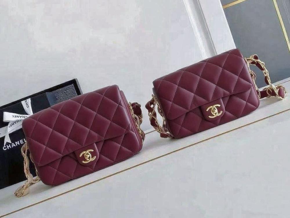 مجموعة شنط شانيل كلاسيكية خمري بسلسلة ذهبي