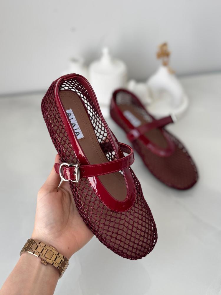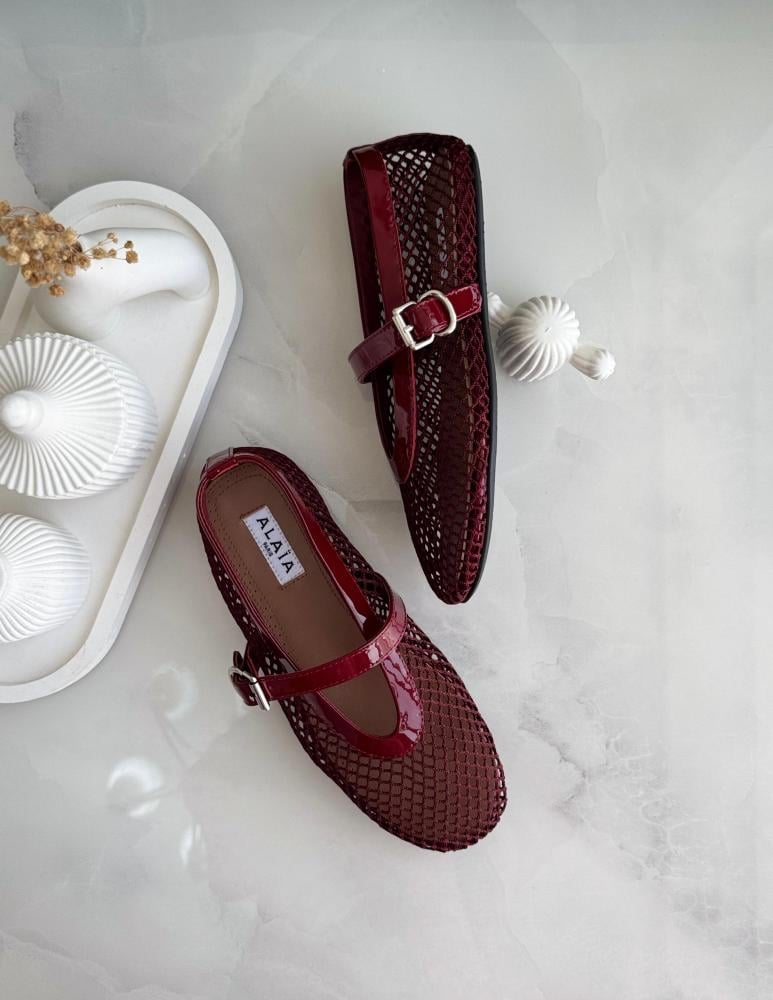 باليرينا آلايا بحزام نمط مفرغ لون برغندي