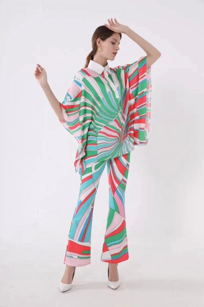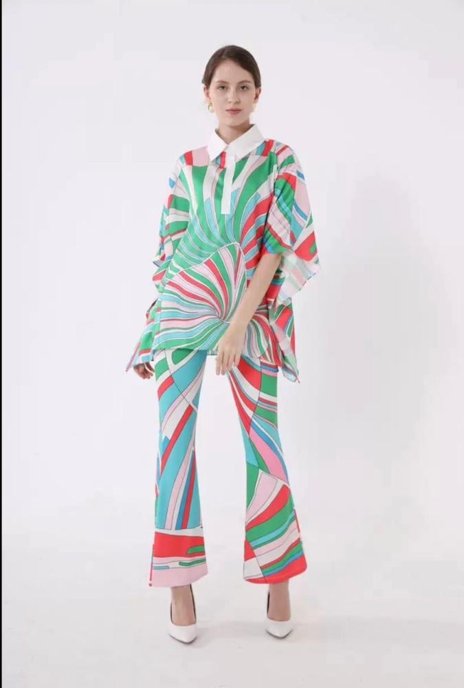 سيت نسائي بوتشي قميص كاب مع بنطال ملون مموج