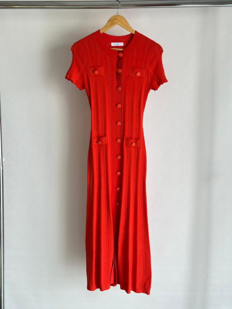 فستان سبور ساندرو بأزرار أمامية نصف كم لون أحمر