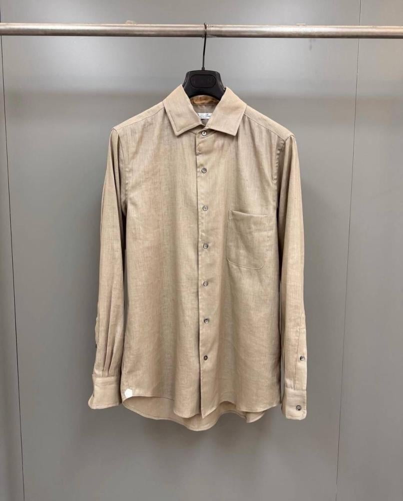 قميص لورو بيانا رجالي بلينن – لون بني فاتح يليق بالذوق الخليجي