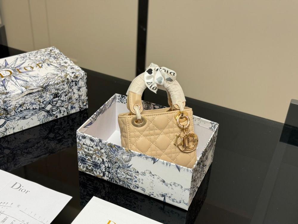 حقيبه ديور ليدي صغيرة جدا جلد مطرز لون بيج