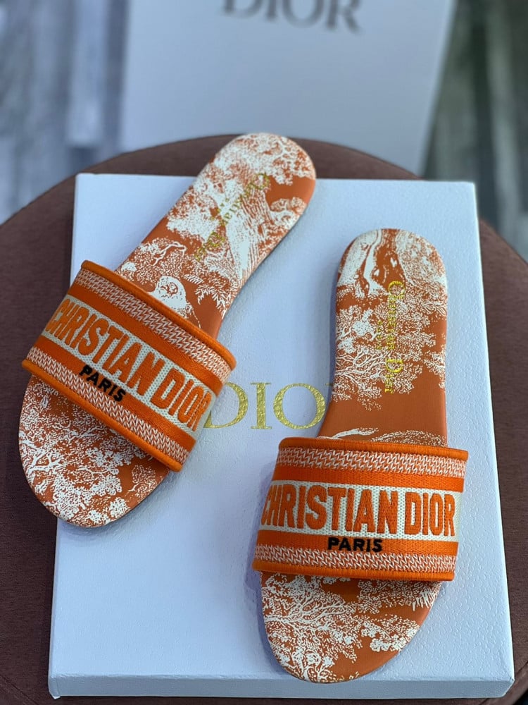 سليبر ديور مميز مريح فاخر بلون أورانج بتفاصيل بيضاء