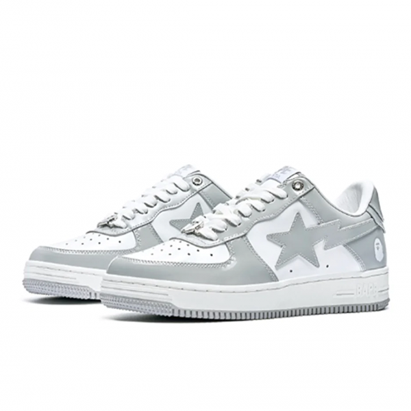 حذاء بابي سيتا رياضي رمادي A BATHING APE BAPE STA هو قطعة فريدة ومميزة تمثل توقيع العلامة التجارية اليابانية الشهيرة A BATHING APE (BAPE). يعد هذا الحذاء جزءًا من سلسلة BAPE STA الرائجة والمعروفة بتصميماتها الجريئة والتفاصيل الفريدة.