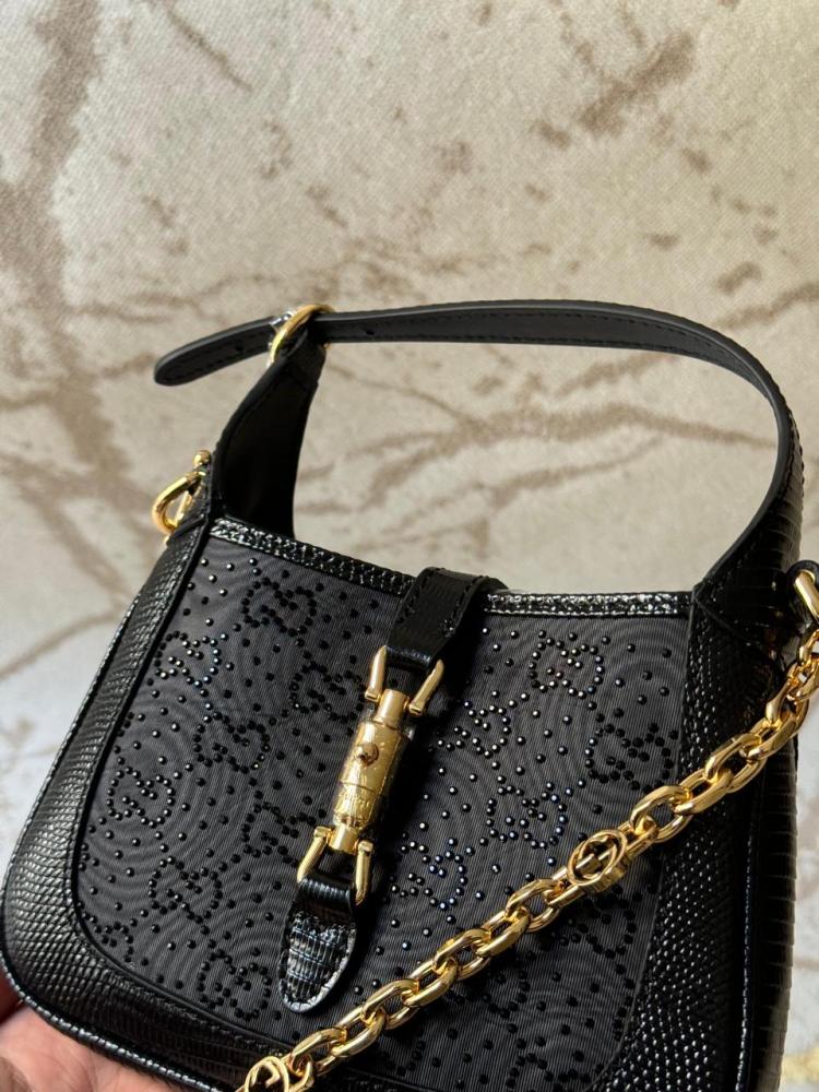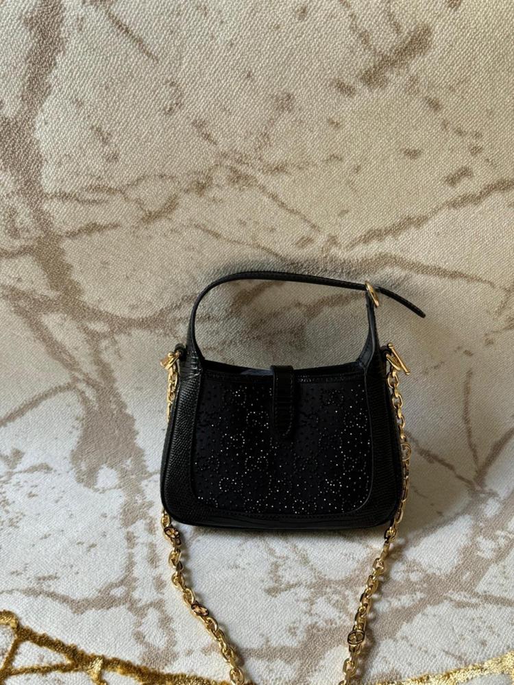 اجعلي إطلالتك تتألق بأناقة لا مثيل لها مع حقيبة اليد مع سلسال من جوتشي، المصممة بدقة لتجمع بين الأناقة والعملية. تأتي هذه الحقيبة بلون أسود بستراس الجذاب، الذي يضفي لمسة من الفخامة على أناقتك.