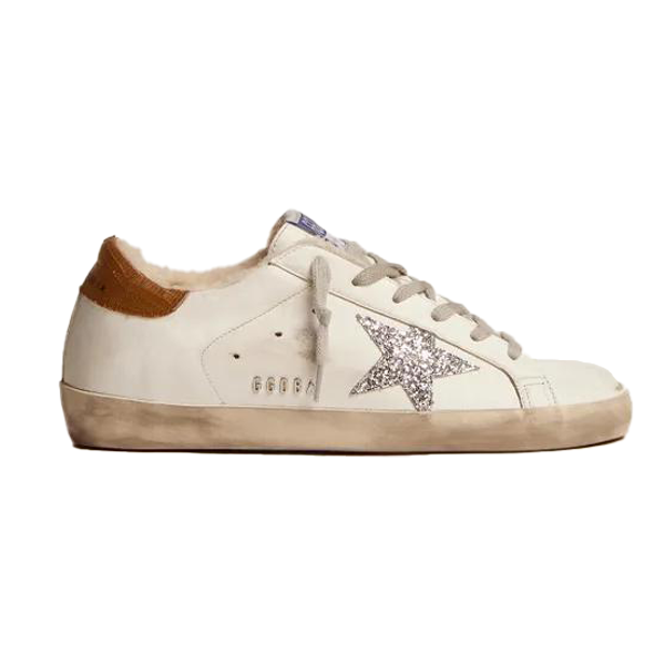 كوني جاهزة للتألق بأناقة مع شوز جولدن جوس سوبر ستار النسائي باللون الأبيض والعسلي، واستمتعي بالراحة والأناقة في كل خطوة.
