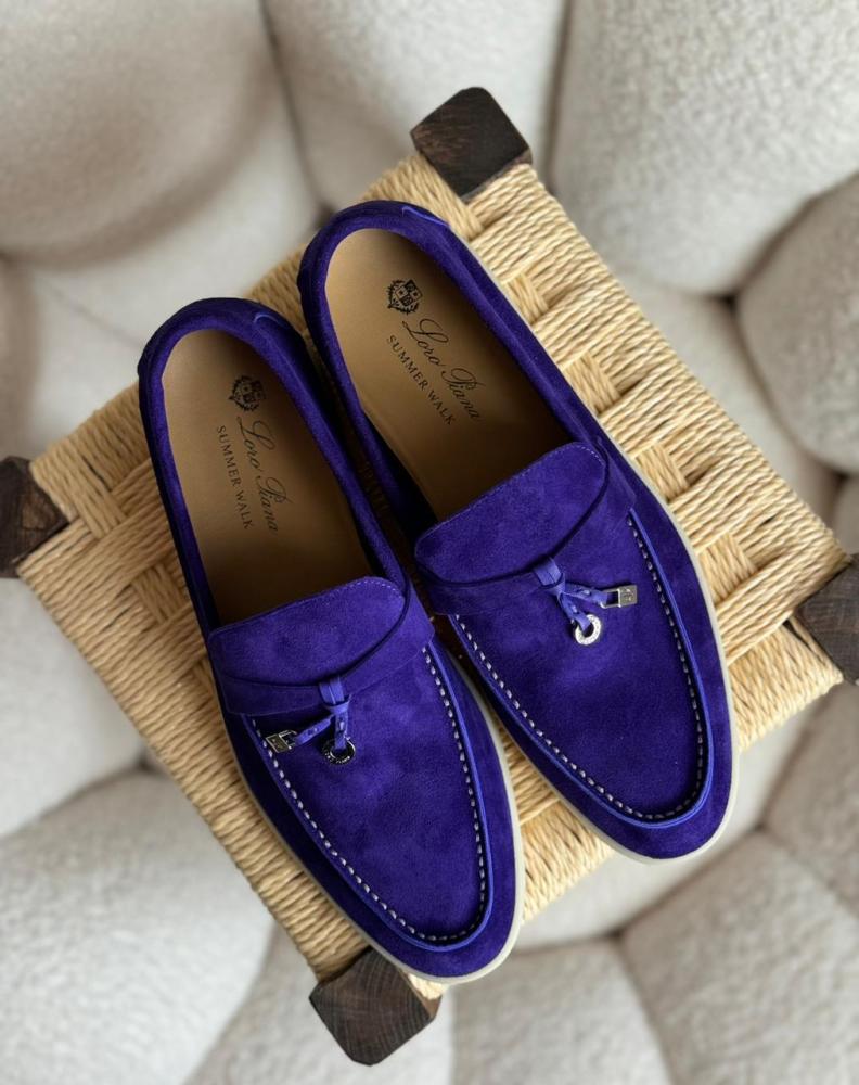 صُنع حذاء شارمينغ ووك فلات من لورو بيانا من جلد الغزال الفاخر باللون الأزرق المميز، ليجمع بين التصميم الأنيق والراحة الاستثنائية. يتميز بخفة الوزن والنعومة بفضل المواد الطبيعية المستخدمة، مما يجعله مثالياً للمشي اليومي أو المناسبات الرسمية.
