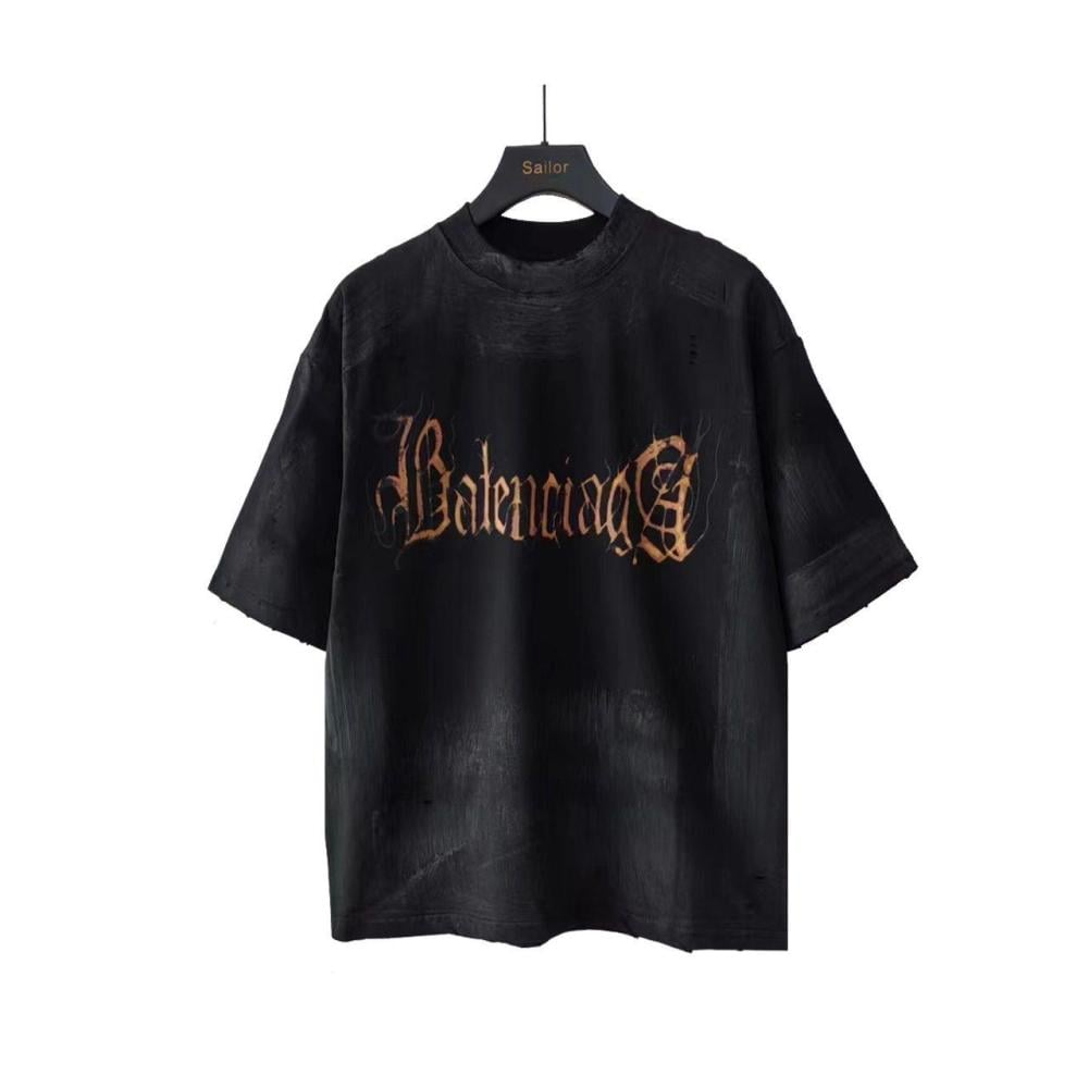 تي شرت بالنسياجا رجالي هيفي ميتال أسود بشعار عسلي شبابي