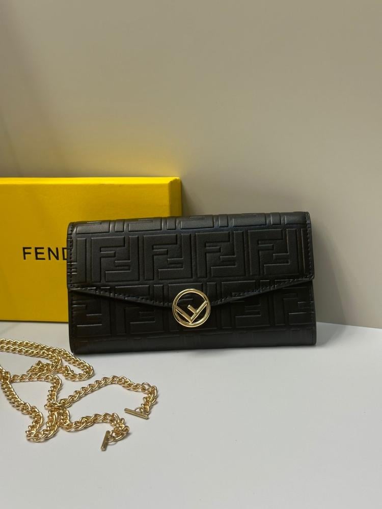 محفظة قلاب فيندي موتيف طبعة FF لون اسود بسلسلة
