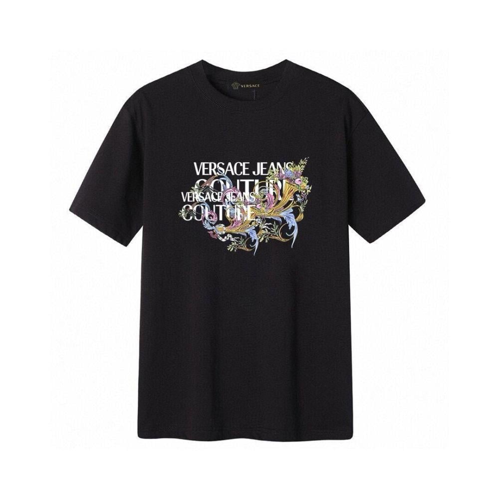 تي شرت فيرزاتشي رجالي أسود مطبوع بزخرفة ملونة