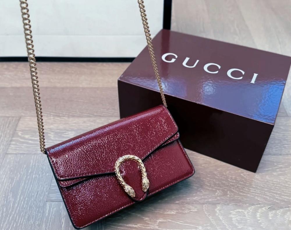 حقيبة جوتشي ديونيسوس الجلدية الفاخرة بلون برغندي لامع تجمع بين الفخامة والرقي بأسلوب عصري أنيق.