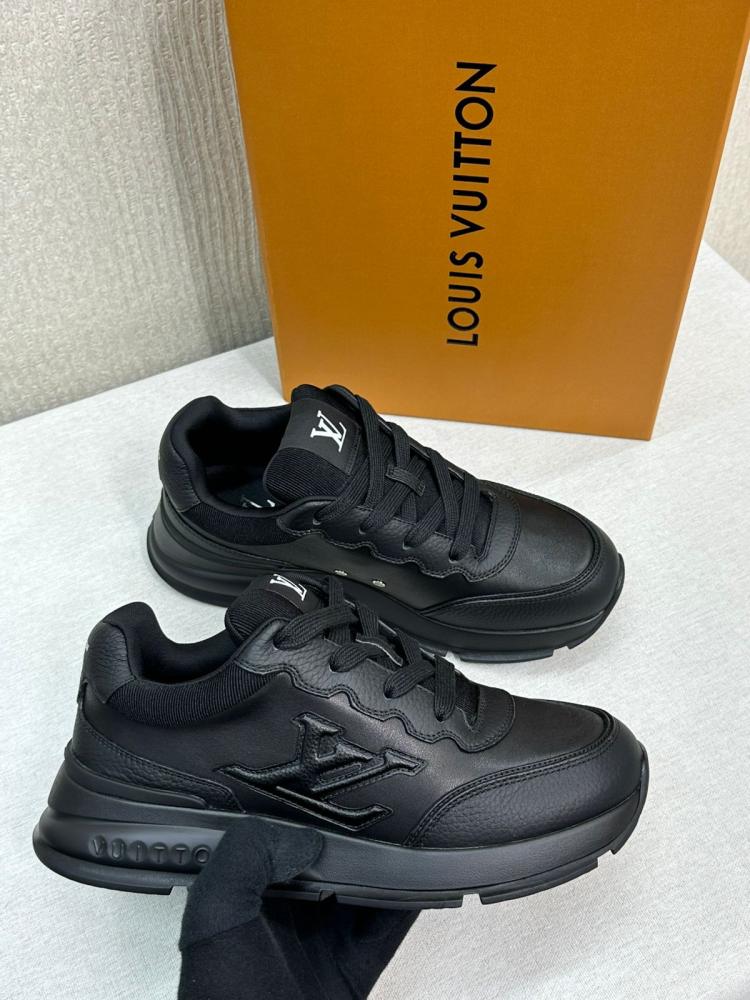 سنيكر لويس فيتون الجلدي الرجالي بلونه الأسود الكامل، المصمم بذوق راقٍ ولمسة فاخرة تليق بكل رجل يقدّر التفاصيل. الحذاء يدمج بين الحرفية العالية والراحة، ليمنحك حضوراً واثقاً في كل خطوة.