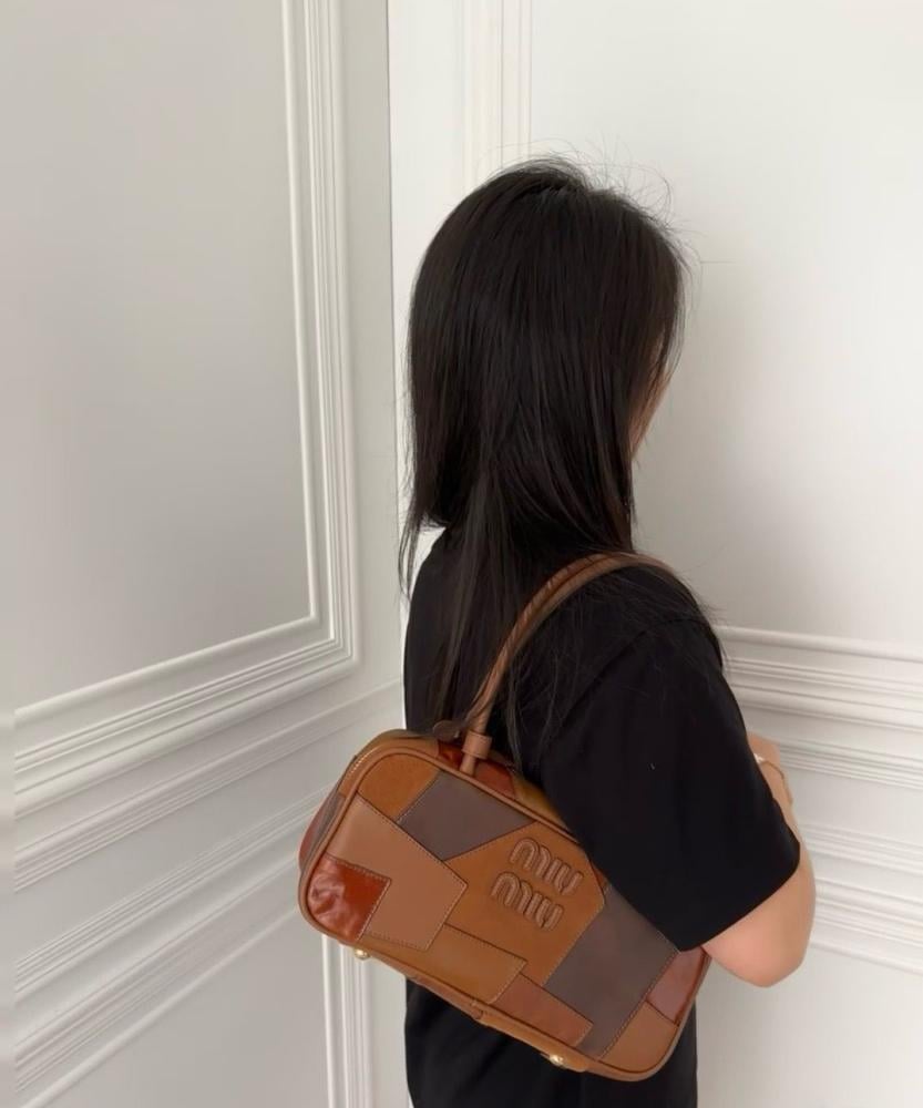 شنطة كتف ميو ميو بلون الكراميل الأنيق