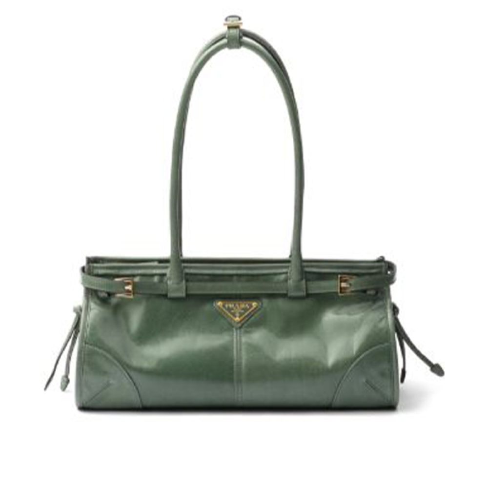 شنطة يد متوسطة برادا جلد فاخر للنساء بمقابض لون أخضر