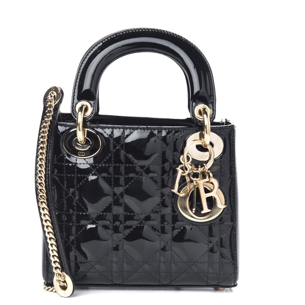 شنطة ليدي ديور ميني كاناج أسود لامع حلي ذهبية