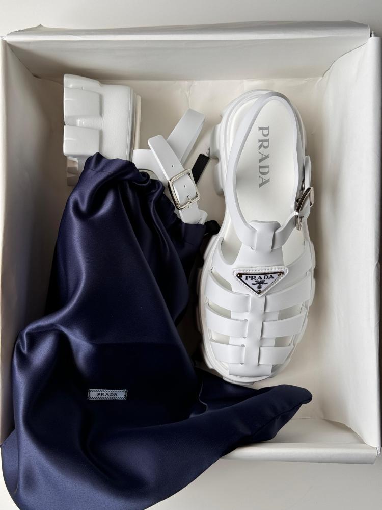 صندل برادا فلات لون أبيض مطاطي مريح للنساء