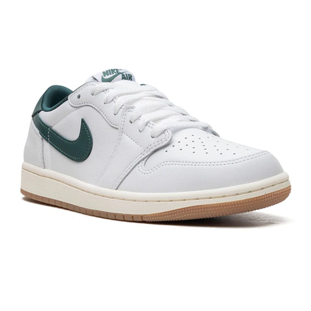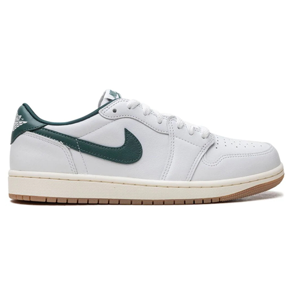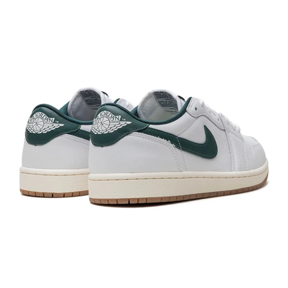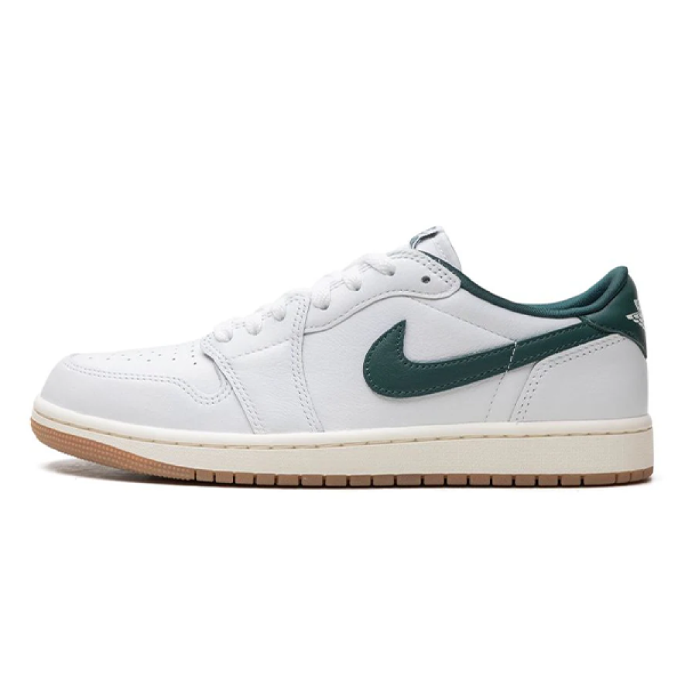 سنيكرز نايكي إير جوردن 1 لو، المصمم للجنسين بلون أسود جذاب مع لمسة لوجو باللون الأخضر الداكن. يجمع هذا التصميم الكلاسيكي بين الأناقة والأداء، ليكون خيارك المثالي لكل الأوقات.