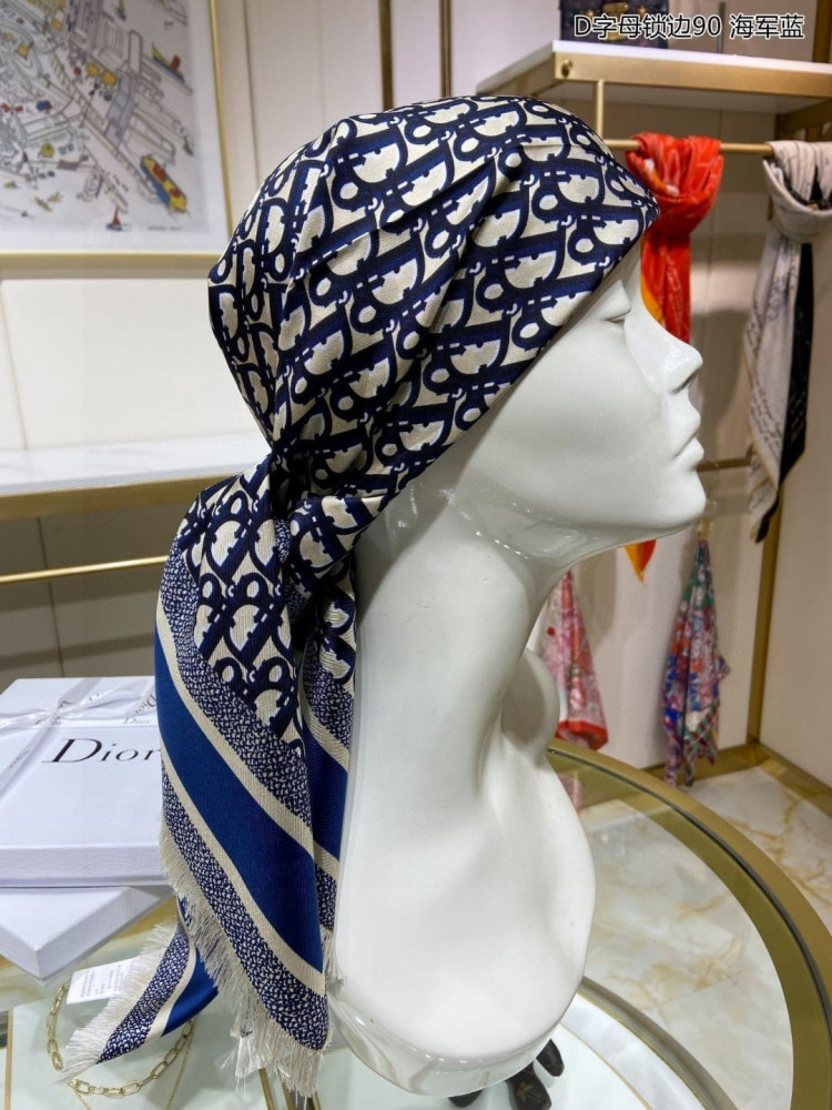 سكارف رأس نسائي من ديور لون كحلي وابيض
