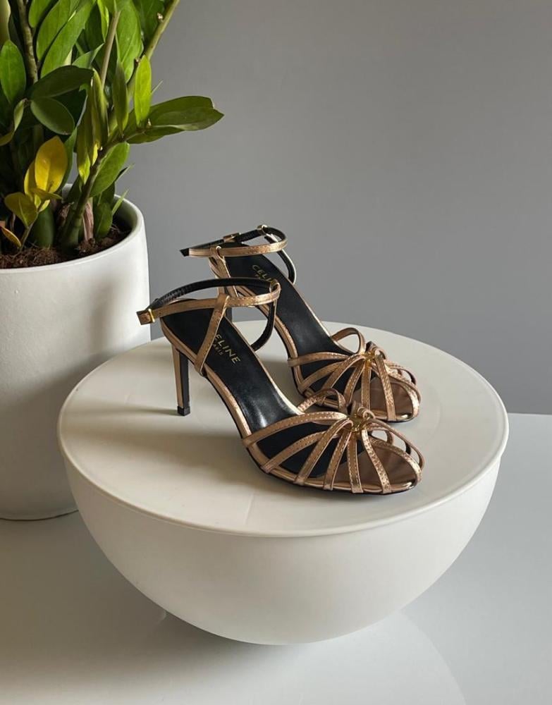 صندل سيلين تريوموف نسائي – كعب عالي بحزام خلفي بلون برونز: الفخامة تلاقي الراحة