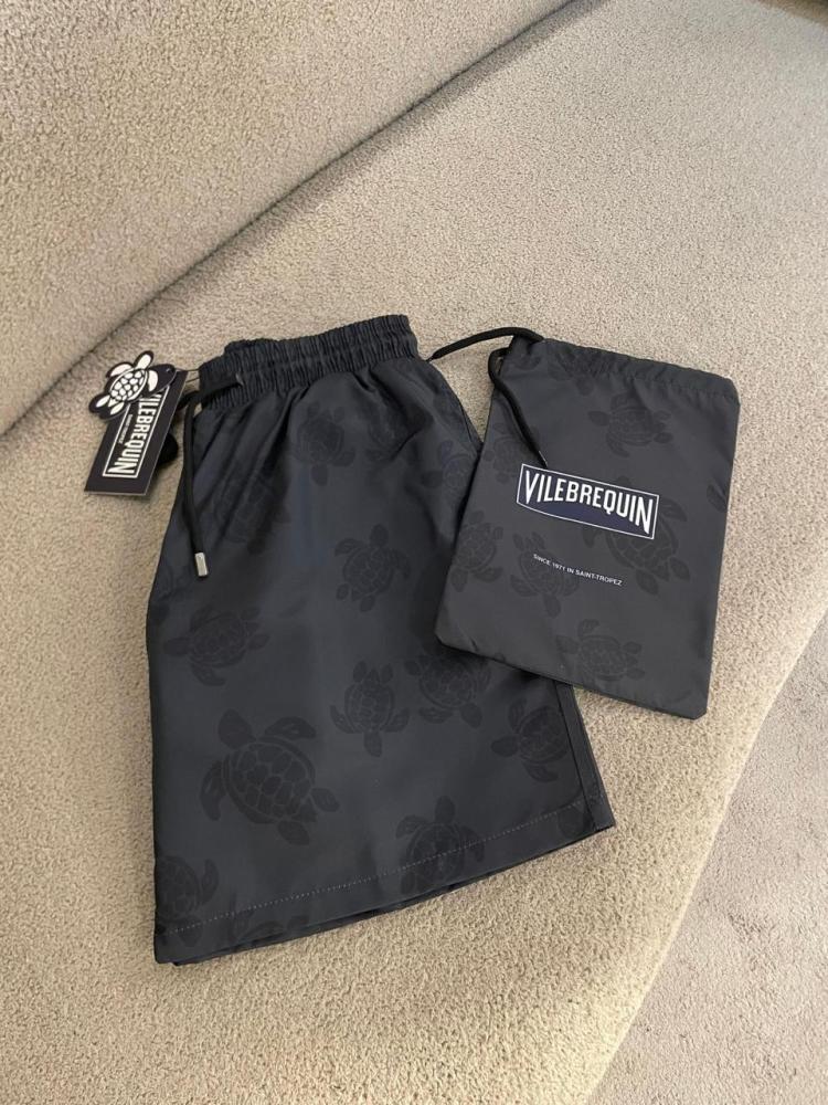 طقم سباحة مكون من شورت رجالي فليبركين بلون أسود سادة وكيس مطبوع بشعار الماركة، يجمع بين الأناقة والعملية في تصميم واحد.