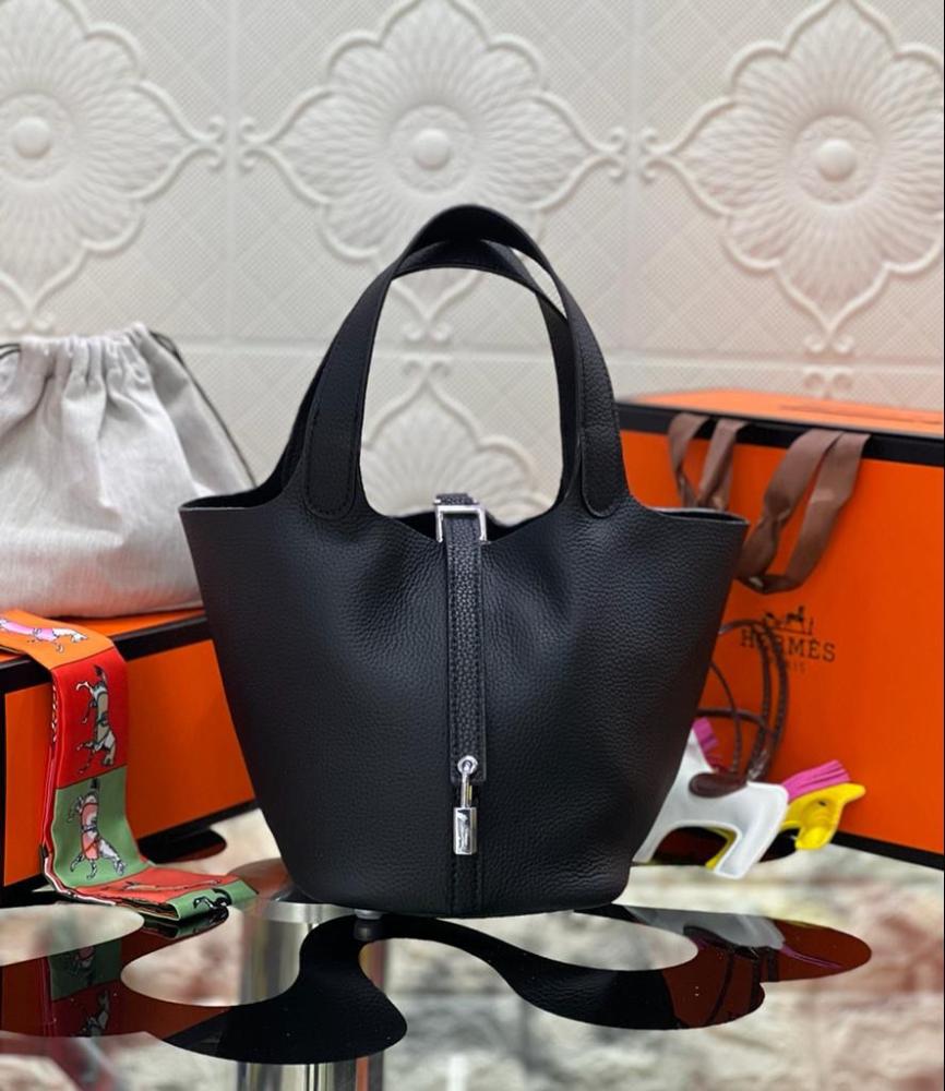 حقيبة هيرميز بيكوتين جلد حبيبات لون أسود معدن فضي