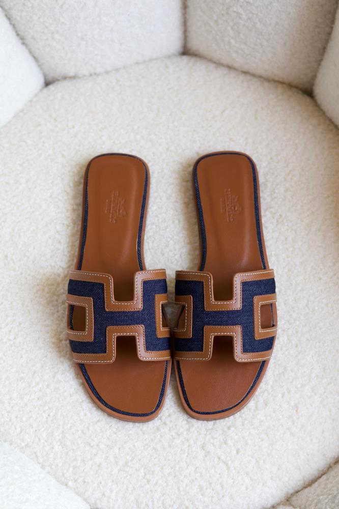 تألقي بأناقة مع شبشب فلات هيرمس اوران بلونيه البني والكحلي الرائعين، المزيج المثالي بين الفخامة والراحة. تصميمه المميز يعكس لمسة من الكلاسيكية مع راحة استثنائية في كل خطوة.
