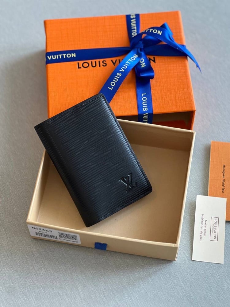 تمتع بأناقة لا مثيل لها مع محفظة لويس فيتون الجلدية السوداء، قطعة فاخرة تُجسد قمة الحرفية والتصميم الاستثنائي.
