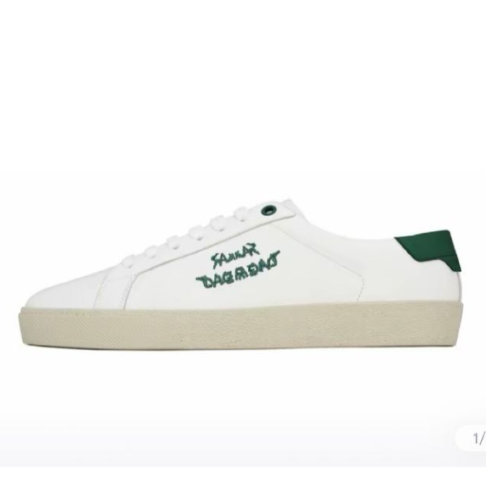 اكتشف الأناقة والراحة مع حذاء “سان لوران وايت جرين” الرياضي، الذي يجمع بين الفخامة والأداء العالي. يتميز هذا الحذاء بجلد أبيض نقي يضفي لمسة من الرقي، مع تفاصيل خضراء تضيف لمسة من الحيوية والجاذبية.