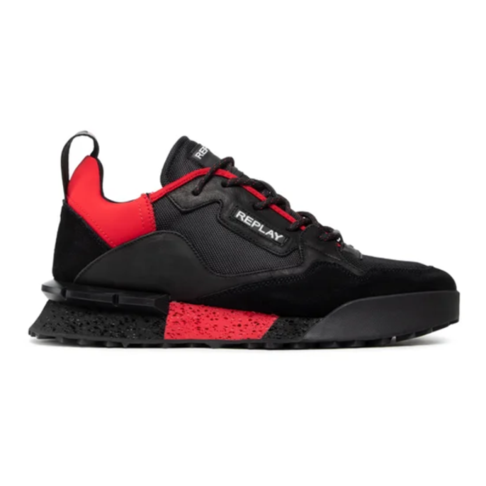 حذاء رياضة ريبلاي الرجالي باللون الأحمر والأسود: أداء قوي مع تصميم جذاب